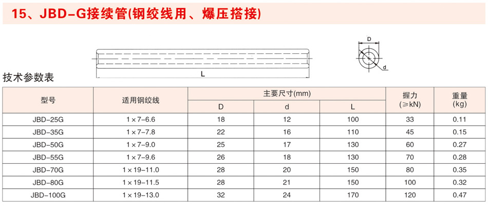 JBD-G接续管(钢绞线用、爆压搭接)