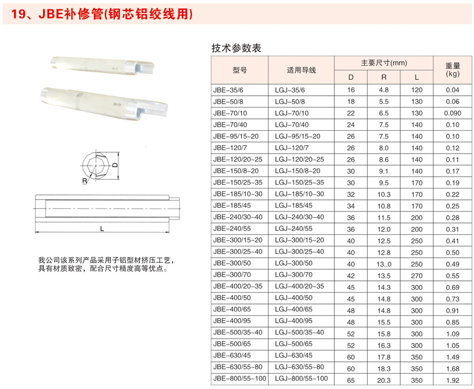 JYD型接续管(钢芯铝绞线用、液压对接)