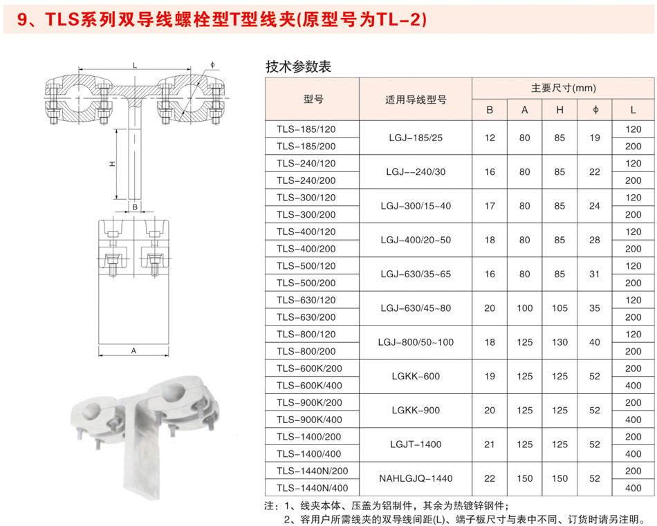 TLS系列双导线螺栓型T型线夹(原型号为TL-2)