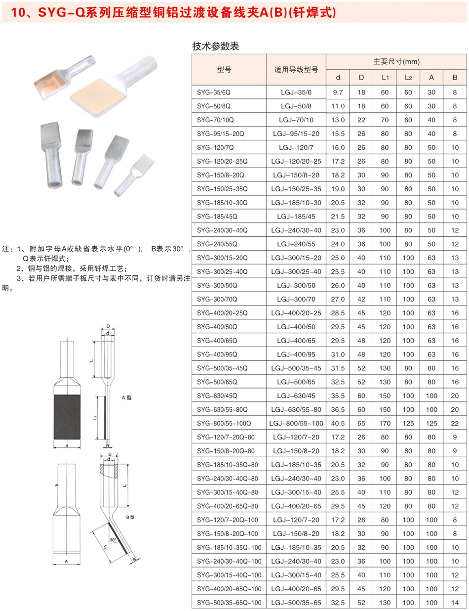 SYG-Q系列压缩型铜铝过渡设备线夹A(B)(钎焊式)