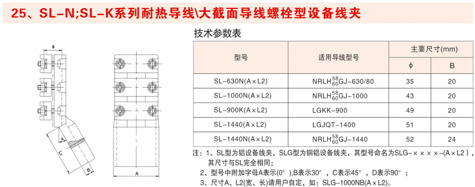 SL-N:SL-K系列耐热导线\大截面导线螺栓型设备线夹