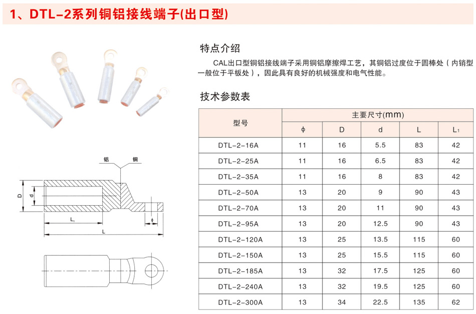 DTL-2系列铜铝接线端子(出口型)