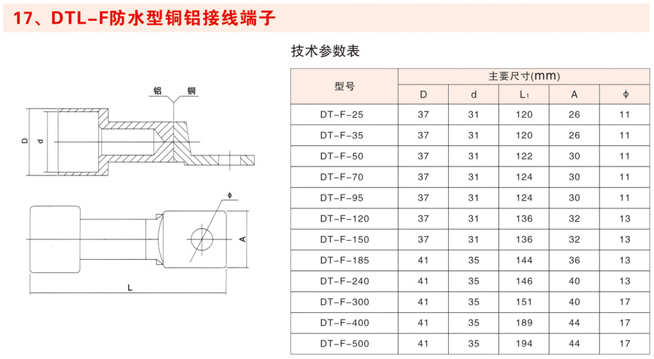 DTL-F防水型铜铝接线端子