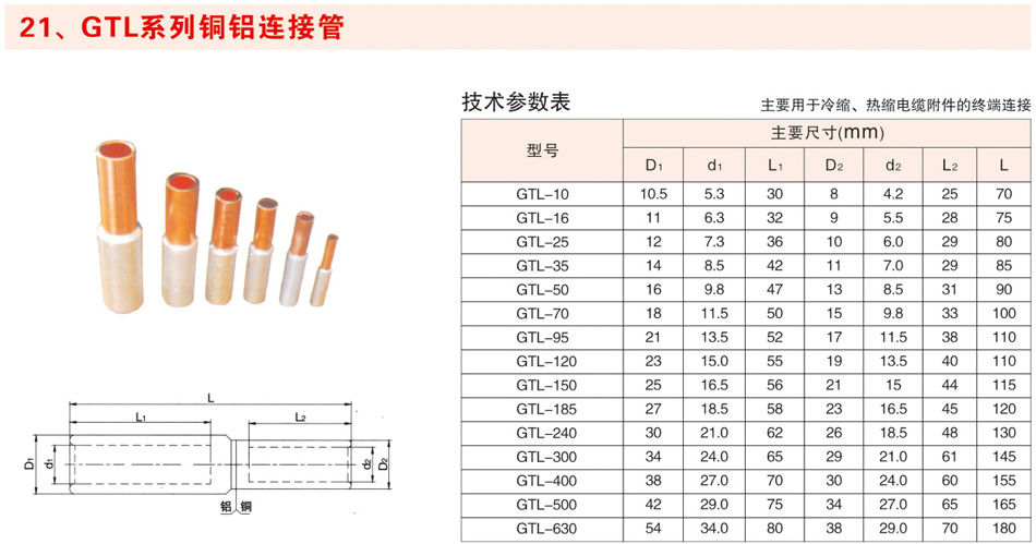 GT、GL系列铜、铝连接管(堵油)