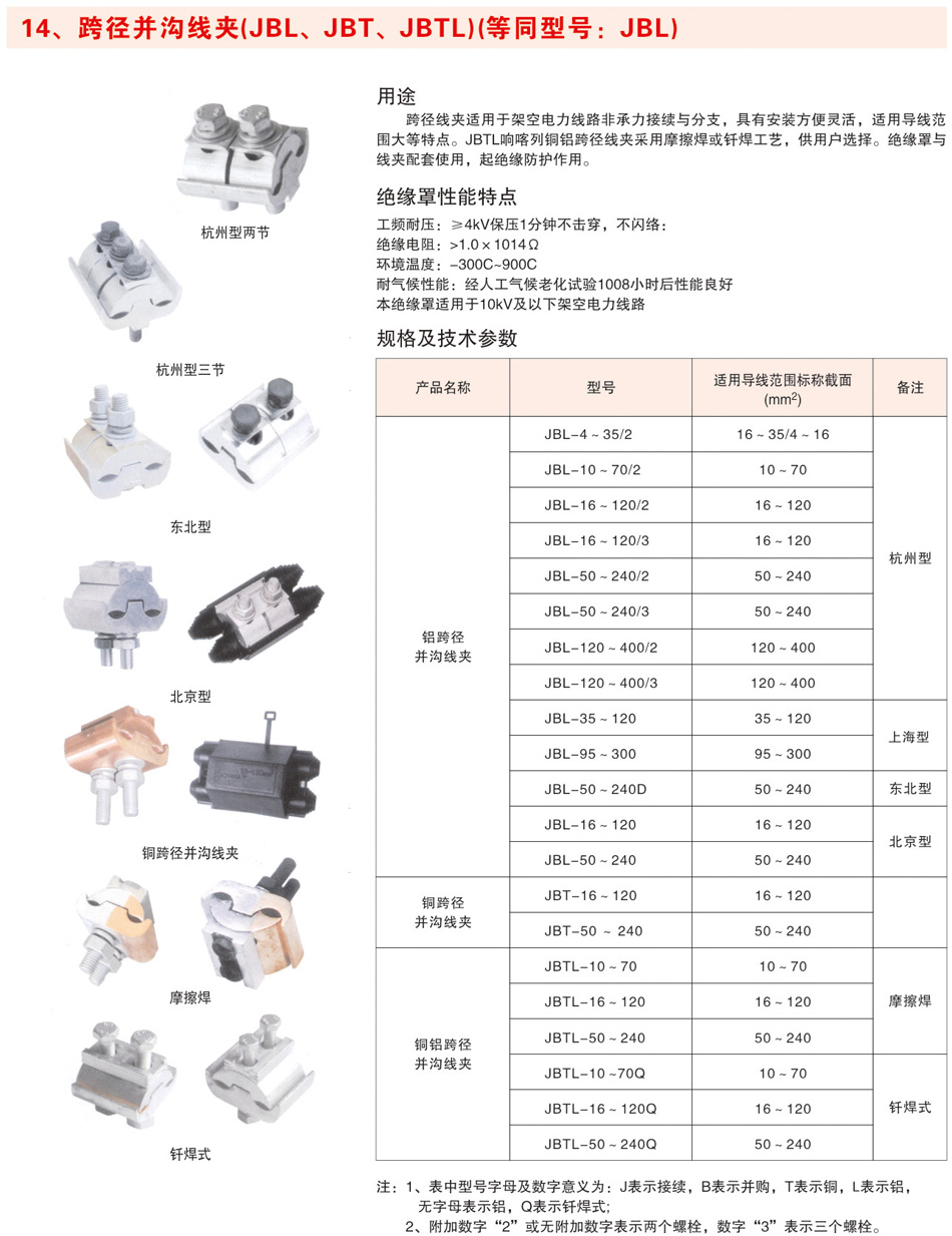 跨径并沟线夹(JBL、JBT、JBTL)(等同型号:JBL)