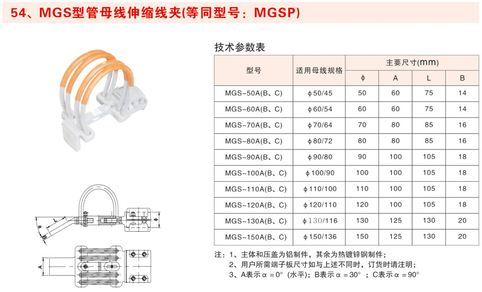 MGS型管母线伸缩线夹(等同型号:MGSP)