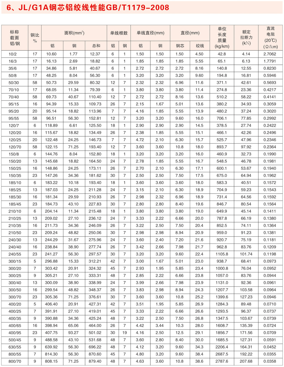JL/G1A、JL/G1B、JL/G2A、JL/G2B、JL/G3A钢芯铝绞线
