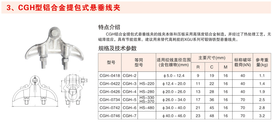 CGH型铝合金提包式悬垂线夹