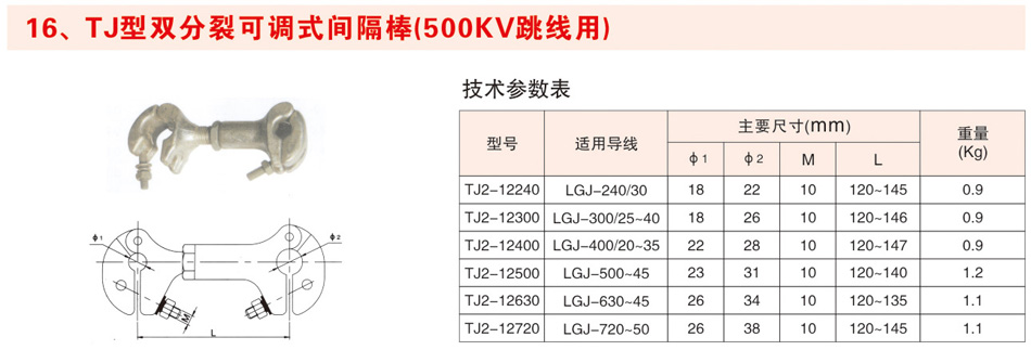 TJ型双分裂可调试间隔棒(500KV跳线用)