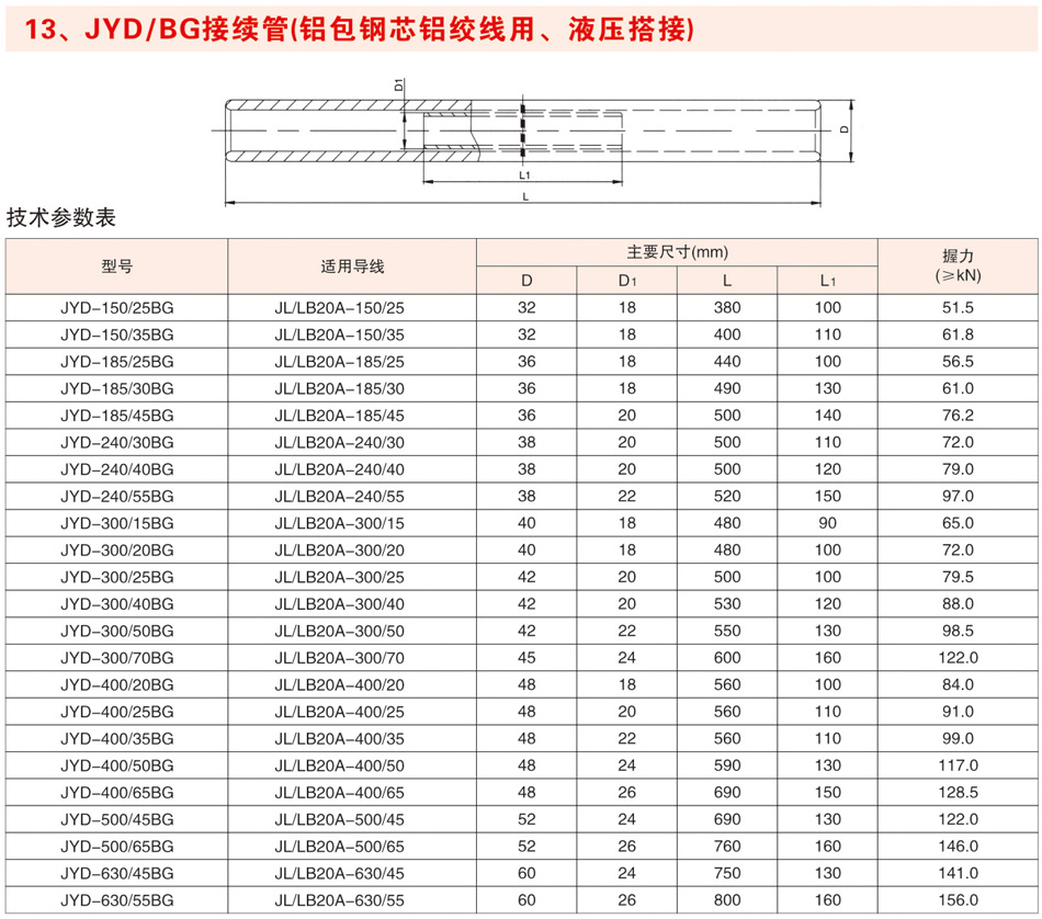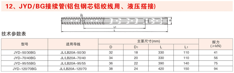 JYD/BG接续管(铝包钢芯铝绞线用、液压搭接)