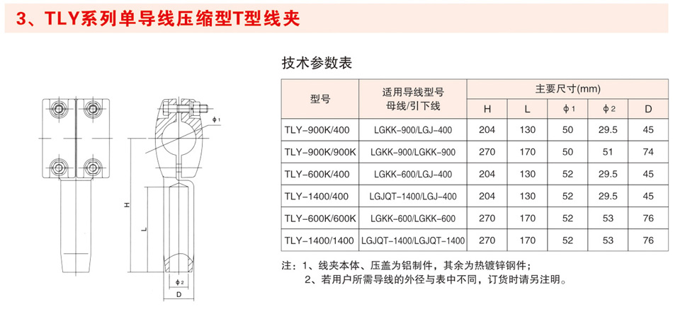 TLY系列单导线压缩型T型线夹