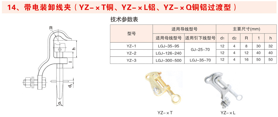 带电装卸线夹(YZ-xT铜、YZ-xL铝、YZ-xQ铜铝过渡型)