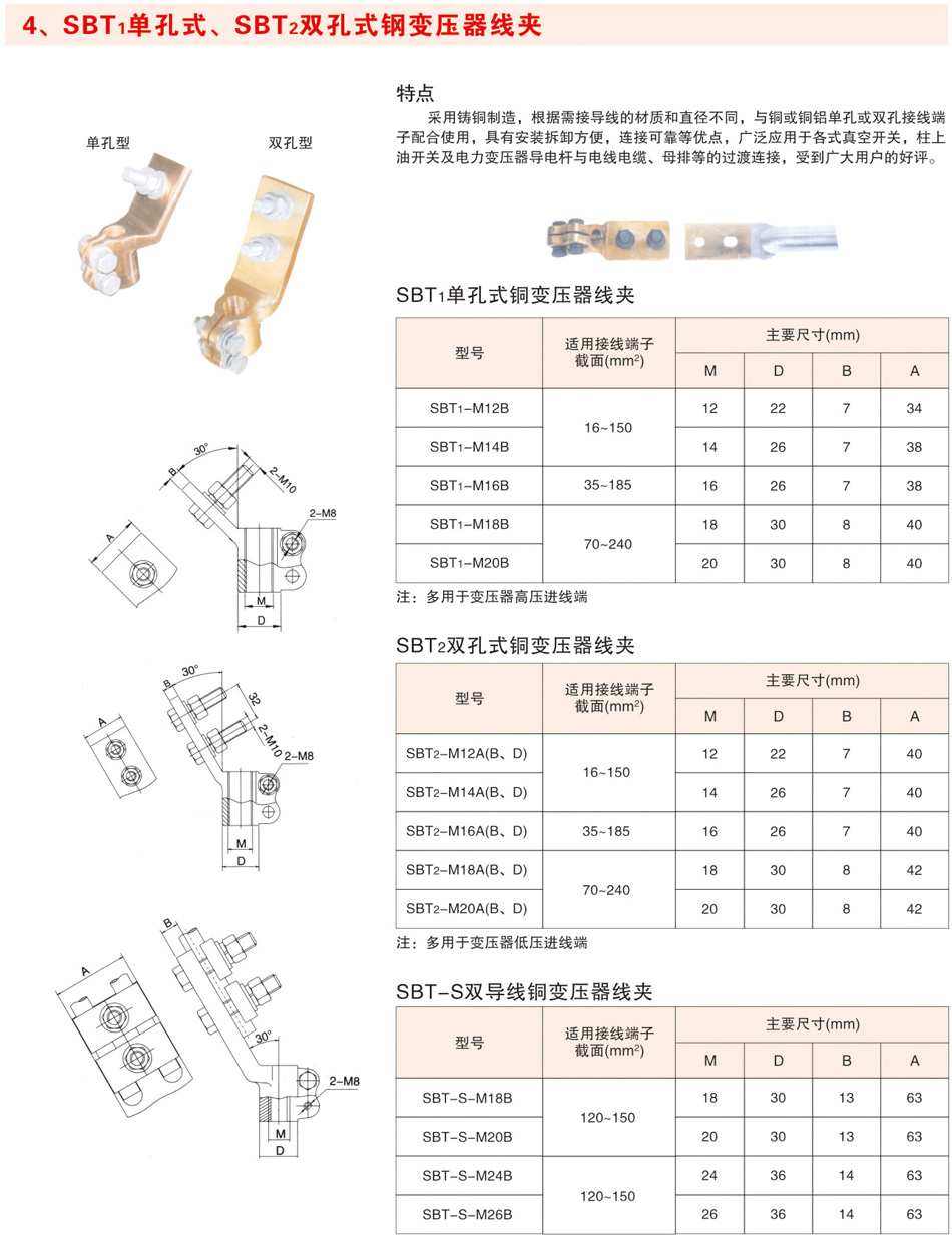 SBT1单孔式、SBT2双孔式钢变压器线夹