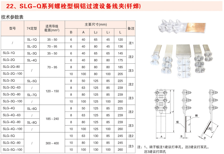 SLG-Q系列螺栓型铜铝过渡设备线夹(钎焊)