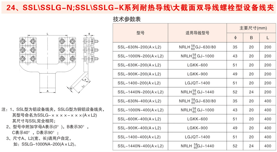 SSL\SSLG-N:SSL\SSLG-K系列耐热导线\大截面双导线螺栓型设备线夹