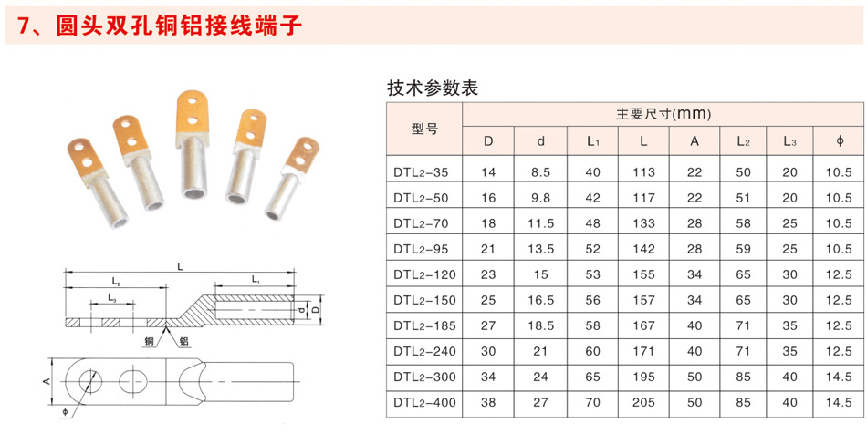 DTL-2系列铜铝接线端子(出口型)