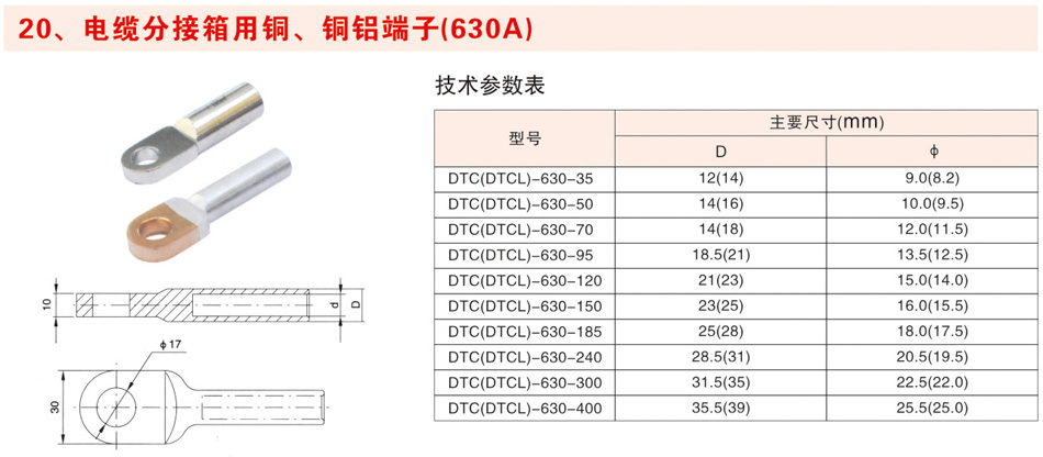 电缆分接箱用铜、铜铝端子(630A)