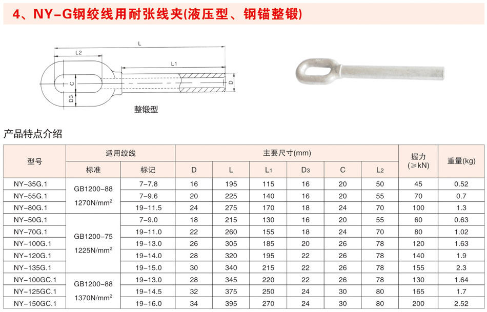 NY-G钢绞线用耐张线夹(液压型、钢锚整锻)