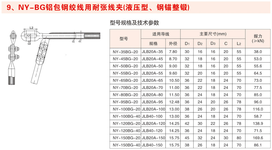 NY-BG铝包钢芯铝绞线用耐张线夹(液压型、钢锚整锻)