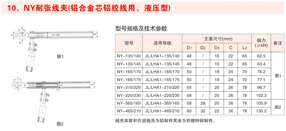 NY耐张线夹(铝合金芯铝绞线用、液压型)
